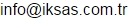Adres : Kavaklıdere Mah. 9501 Sk. No:34 Bornova-İzmir   Tel: (232) 360 12 42   Faks: (232) 360 10 83   E-Mail : info@iksas.com.tr